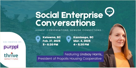 Purppl and Thrive Impact Fund invite you to engage with this question at Social Enterprise Conversations in Kelowna on February 27 and Kamloops on March 4. These panel discussions explore how nonprofits can leverage social finance tools like debt financing, loans, and community bonds to scale their impact and sustainability. Join us for insightful conversations with sector leaders, including Lindsay Harris of Propolis Housing Cooperative, and learn how to challenge your board’s assumptions about growth and financing.
