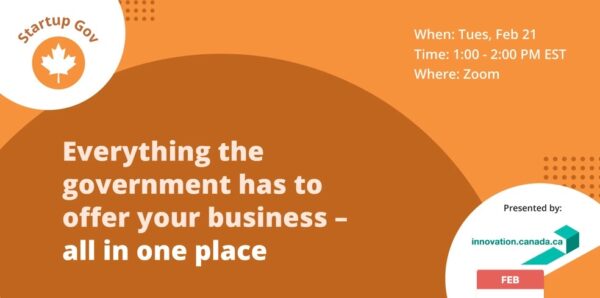 Joignez-vous à Startup Canada le 21 février pour en apprendre davantage sur la série de programmes et de services d’Innovation Canada, comme l’Outil de recherche des avantages pour les entreprises, qui vous permet d’accéder à une liste personnalisée de soutien, y compris le financement, les prêts, les subventions salariales, les crédits d’impôt et plus encore. Découvrez également comment vous pouvez travailler avec un conseiller en innovation pour vous mettre en relation avec les bons programmes, connaître les offres pour votre entreprise et obtenir des informations et des conseils utiles !