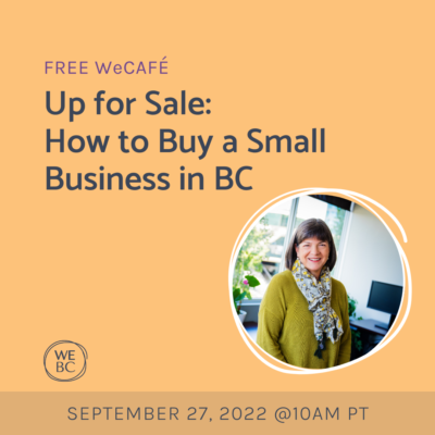 Register free: https://staging.we-bc.ca/product/up-for-sale-how-to-buy-a-small-business-in-bc/