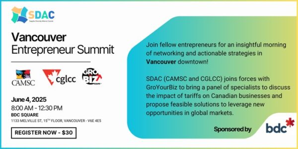 SDAC (Supplier Diversity Alliance Council) is heading West this June! CAMSC and CGLCC join forces with GroYourBiz to bring you this in-person event on Wednesday, June 4, in downtown Vancouver.