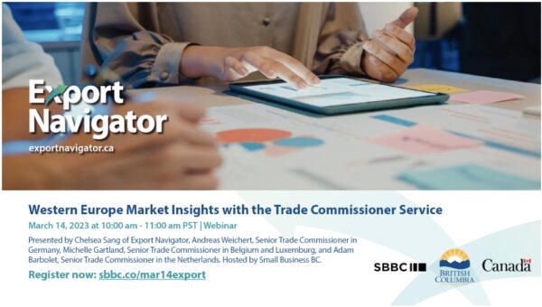 Want to learn more about exporting to Western Europe? Export Navigator will be hosting a webinar with the Trade Commissioners from Germany, the Netherlands, Belgium and Luxembourg to discuss commercial opportunities in their respective markets.