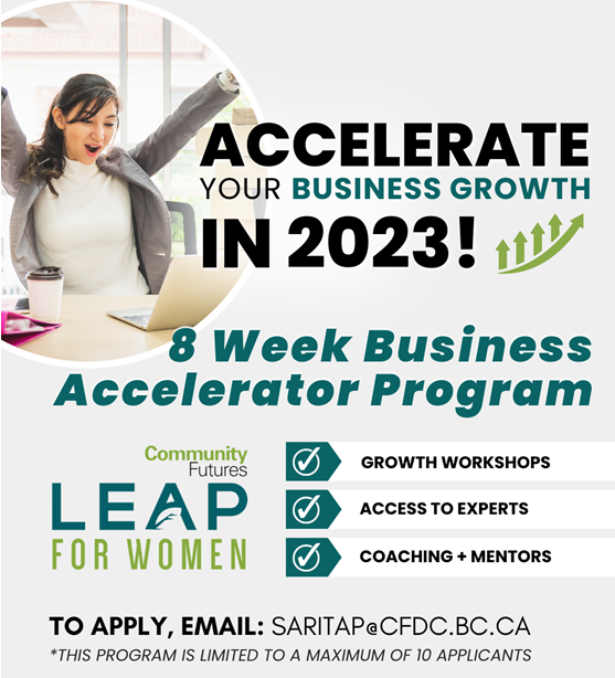 LEAP for Women is hosting an in-person lunch for local women entrepreneurs on Thursday, January 12th at the Prince George Coast hotel. - Bring your questions and discussion points - Build your professional network and share contacts - Share your ideas, expertise, and recommendations - Elevate your skills, gain knowledge and get support This monthly […]