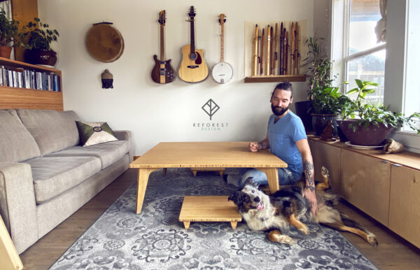 After spending time designing and building sustainable homes, studying permaculture farming, and silk-screen printing sustainable clothing she realized there was an opportunity. Thus sparked the idea for Reforest Design.